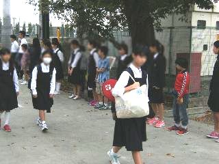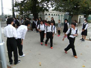 今朝は、砧小学校、明正小学校、山野小学校の児童のみなさんが来校し、4校合同あいさつ運動を行ないました。