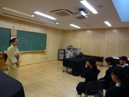 講師の先生から、茶道・華道の歴史や作法についてのお話を聞き、実際に体験を行いました。