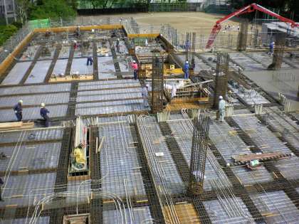 今週の始めは雨天が続きましたが、校舎の一部改築工事は順調に進んでいます。