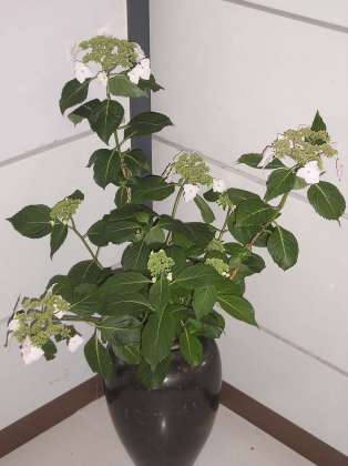 プレハブ校舎の1階階段下に、花が生けてあります。