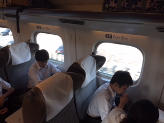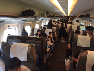 新幹線の中ではしおりを書いたり、トランプやウノをしてゆっくりしています。