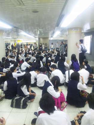 ひとりの遅刻者もなく、生徒二百八名集合しました。これから、新幹線ホームに移動します。