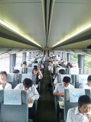 京都に到着し、近鉄線の中でお昼ごはんです。