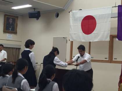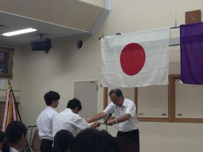 世田谷区中学校体育連盟 夏季総合体育大会において、砧中学校は男子2位、女子3位になり、今日代表の生徒が表彰式に参加しました。各部活動が頑張った成果が認められました。