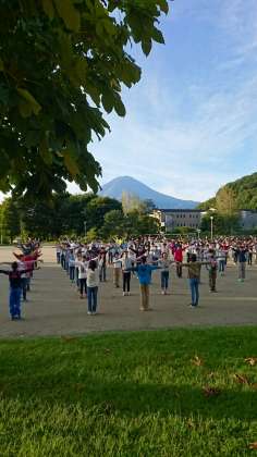 昨夜の雨も、すっかり上がり、部屋から、くっきり富士山が見られます。みんな元気に園庭で、ラジオ体操をしました。