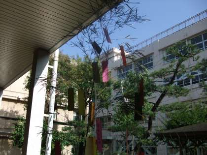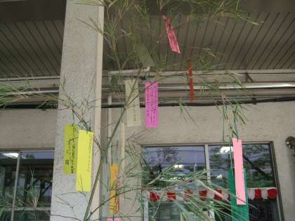 I組では、みんなで短冊に願いごとを書いて笹に吊るしました。