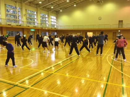 まだ朝は雨が残っているため、朝会は体育館で行いラジオ体操も行いました。