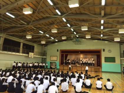 合唱コンクールに向けて、3年生が課題曲のリハーサルを行いました。