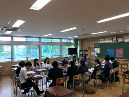 本日25日(水)、砧の学び舎(砧中学校、明正小学校、山野小学校、砧小学校)4校の教職員全員が集まって、合同会議を行いました。