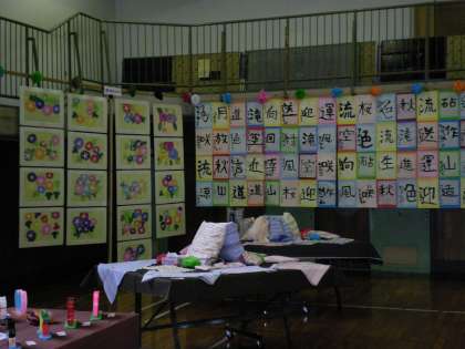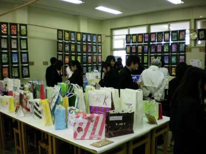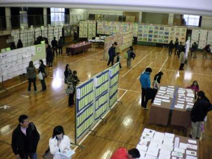 体育館1階の格技室・南校舎の一部では、生徒作品を展示しました。各教科や選択授業・総合的な学習の時間などで学習したものをさまざまな形態の作品にしたものです。