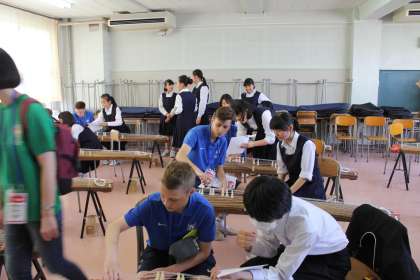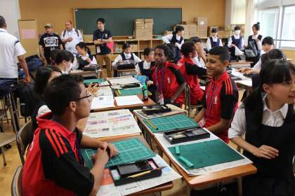 本日(5月1日)、3日からの連休で駒沢競技場で行われる国際ユースサッカー大会に参加する、エジプト、カイロのチーム16名とロシア、モスクワのチーム16名が日本の学校の体験に来ました。