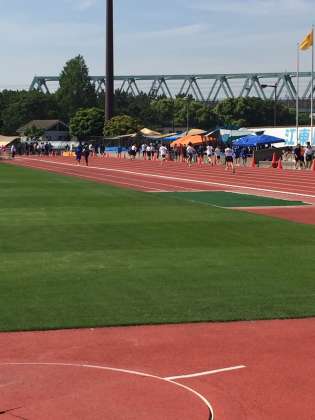 全都から終結した陸上部。都大会出場を目指して一斉にアップが始まりました。
