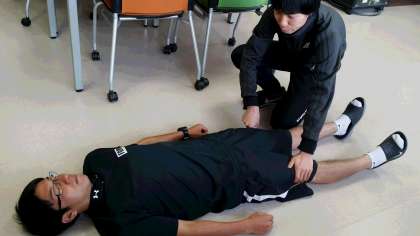 エピペンの使い方など、実際に体験しました。