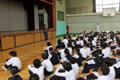 運動会が近いこともあり、クラスを引っ張っていく体育委員を紹介し、学年代表から目標を話しました。