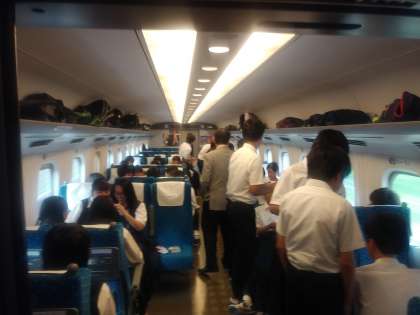 新幹線は名古屋を出発し、車内は昼食タイムです。