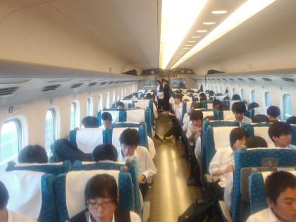 東京を出発して約1時間半、車内では思い思いの時間を過ごしています。