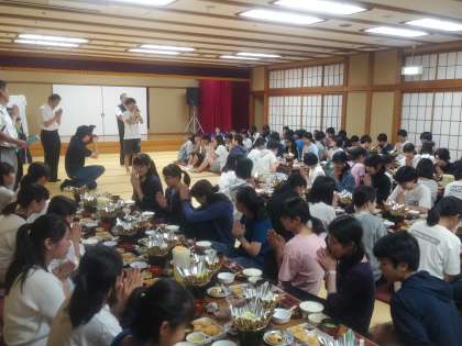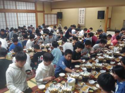 あちこちで「おかわり」の手が上がり、たくさん食べています。