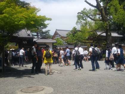 こちらは金閣寺前。人の流れが途切れることなく、続いて行きます。