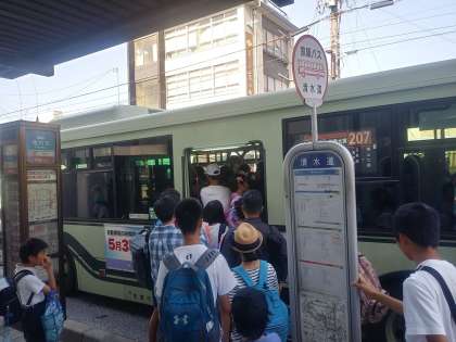 バス停には、いくつかのグループが待っていましたが、先ほど全ての班何とかバスに乗り込むことができました。