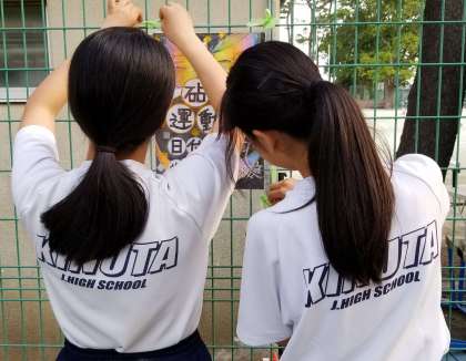 運動会の練習に、熱が入る毎日です。イラスト部では、ポスターを描いて運動会を盛り上げようと、校門のまわりに、制作したポスターを設置しました。運動会、優勝目指してどのチームもがんばってください。