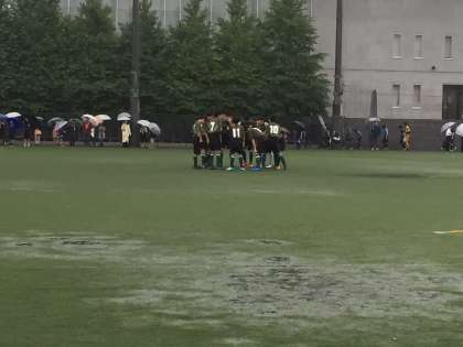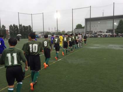 大雨の中、また運動会の疲れの残る中、全員が必死に戦いましたが、最後の最後に失点してしまい、0ー1で惜敗しました。