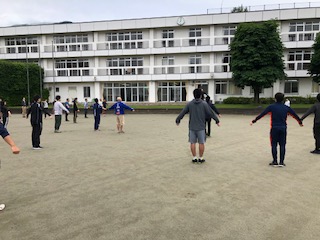 本日は生徒も行う朝礼、朝食後、