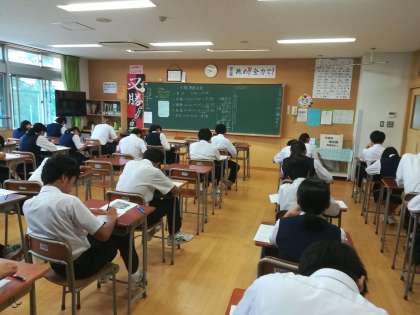 真剣にテストに取り組んでいます。