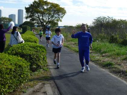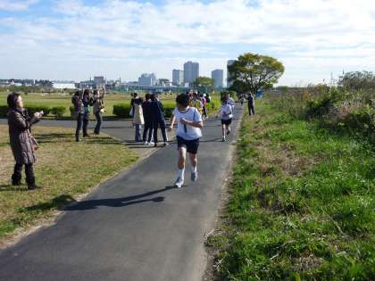 12月16日(木)に1・2年生が走るマラソン大会のコースと同じ多摩川の土手を