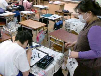 書写は2グループに分けて授業をしています。