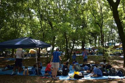 くじ運が悪く、競技場隣の公園にテントを設営し、競技に向けて待機しています。