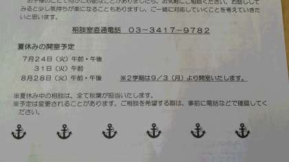 終業式前に配布した相談室だよりをご参照ください。