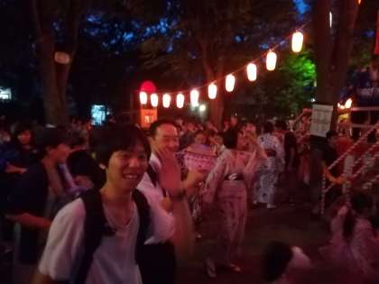校長先生、畑田先生も盆踊りに参加してお祭りを楽しんでいます。