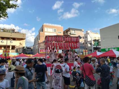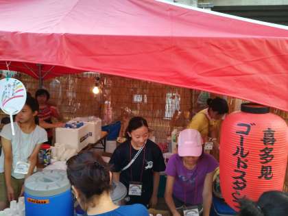 昨日は台風のため中止になりましたが今日は天候もよく多くの人がでています。砧中生のボランティアも参加してお祭りを盛り上げています。