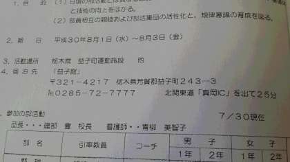 部活動合同合宿について