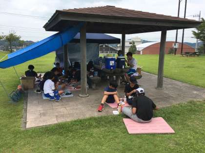 午後の練習に備えて、お弁当を食べて体力を回復させています。