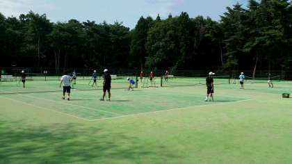 井頭(いがしら)公園テニスコートでの練習。東京の井の頭公園ではありません。