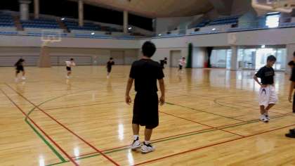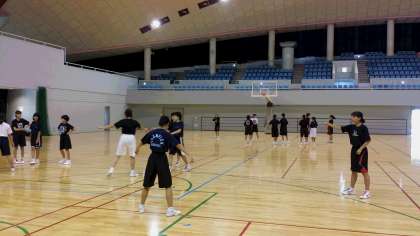 男子は瞬発力と体幹を鍛える基礎トレーニング、女子はディフェンスの動きを確認しています。