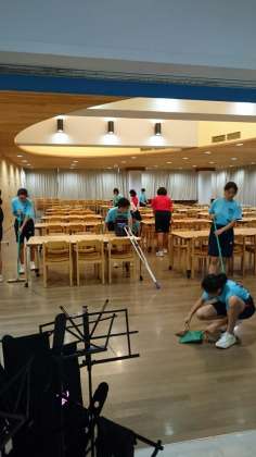 今日は、ランチルームなど使わせていただいた場所の片付けや清掃を行っています。