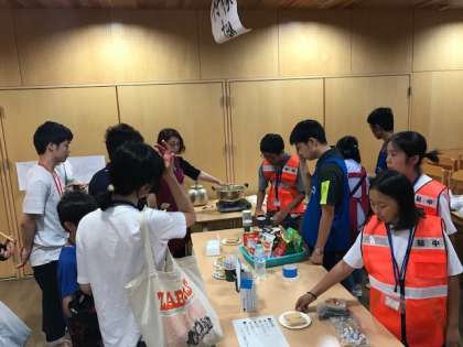 本日の防災ふれあいDAYでは、ボランティアやレスキュー隊の砧中の生徒もお手伝いとして頑張っています。