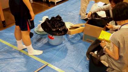簡易担架と簡易トイレの体験です。