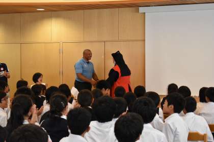 大怪我や様々な経験を通してパラリンピックを目指すまでのお話や、難しいと言われることを出来るように挑戦していくことの素晴らしさを、通訳の方を通して、生徒に分かりやすくお話をしてくださいました。