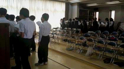 3年生が学芸発表会の課題曲『青葉の歌』を練習しています。