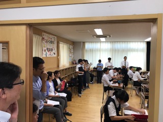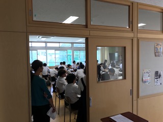 今日の5時間目は、砧の学び舎の3校の小学校の先生方が、砧中学校の授業を見学に来ました。授業を見学した後は、それぞれの学校の先生方同士が教科ごとなどに集まって、いろいろな意見交換をします。先生方も授業をより良くするために頑張っています。