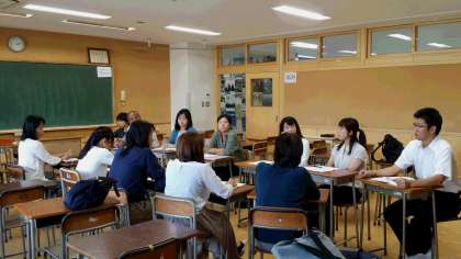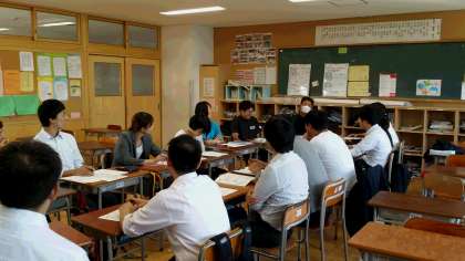 小中の教員合同で、教科ごとに分かれての会議です。
