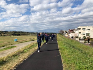 I組は、11月30日に行われる5校合同マラソン大会にむけて、今日は二子玉川の河川敷で試走を行いました。