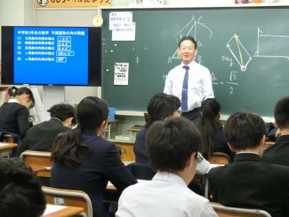2学年を対象に、都内の高校から先生方に来ていただいて、授業を行っていただきました。普段とは違った緊迫感がありましたね。これを機に自分がどんな高校に行きたいかということに興味を持ってもらいたいです。高校の先生方も仰ってましたが、3年になると模試などで忙しくて学校見学に行けないことも多いそうです。2年生の内に行っておくのをお勧めしていました。