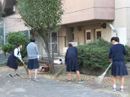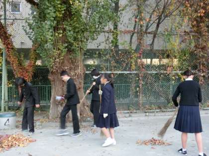 本日、生徒会主催による落ち葉掃き清掃が行われました。