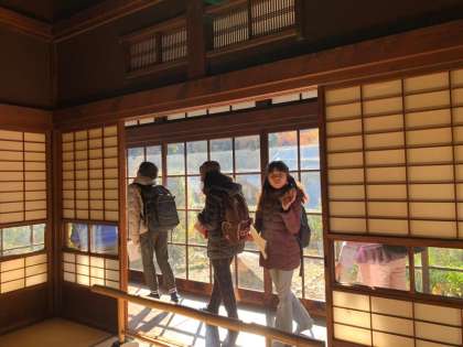 家の中に実際入ったり、床上にあがり、昔の日本の家をじっくり見ています!