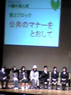 1月22日(土) 世田谷区立中学校生徒会サミット 企画・運営による第5回「14歳の成人式」が開催されました。本校からは、2年生2名が代表として参加し、今日の発表に向けて7月から準備してきました。会場には、2年生たちの思いを直に受け取る1年生が各校から集まりました。砧中の1年生は36名が参加しました。先輩からの熱いメッセージを受け取りました。