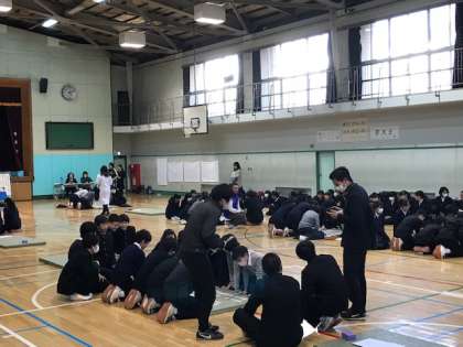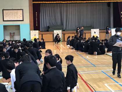 いよいよ始まりました、砧中学校三大行事のひとつ、百人一首大会の決勝トーナメントです!選手も応援も熱くなっています!